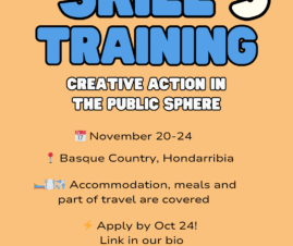 🌍 Training 3: Creative action in the public sphere 📅 November 20-24, 2025 📍Location: Hondarribia, Basque Country ✨Workshop Language: English Costs: 🛏️ All costs covered: accommodation, meals + part of tra...