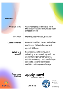 For minority youth aged 16–30 from YEN member organisations and guests (if enough spots remain).